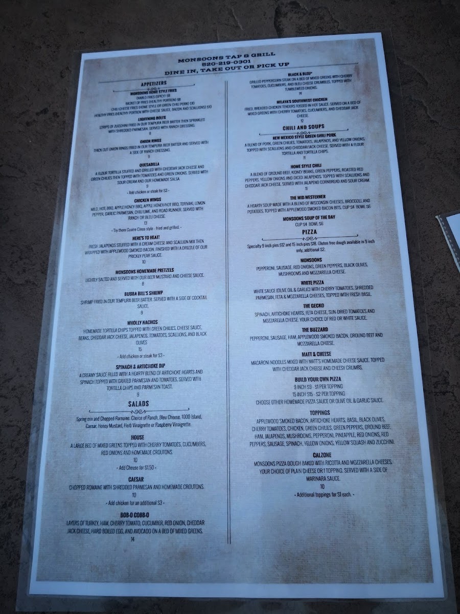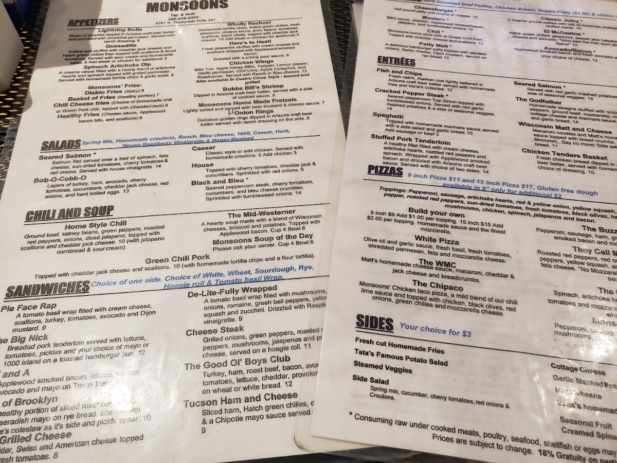 Monsoons Tap & Grill offers a relaxed, approachable menu that fits naturally into its casual bar and grill setting. Expect comforting, made-from-scratch dishes that pair well with a wide selection of local beers and classic cocktails. The menu leans into familiar favorites alongside a few thoughtful twists, making it a convenient spot for a laid-back lunch, an easy dinner, or a weekend gathering with friends on the outdoor patio.